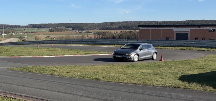 Am Anfang wurde auf dem Handlingskurs ohne Pylonen getestet, zur Freude der Berg- und Rundstreckenfahrer. Später wurden Pylonen aufgestellt, denn am Wochenende stehen die ersten Läufe zur Deutschen Slalom Meisterschaft an. Hier konnte die Strecke von Ebern und Schesslitz getestet werden.