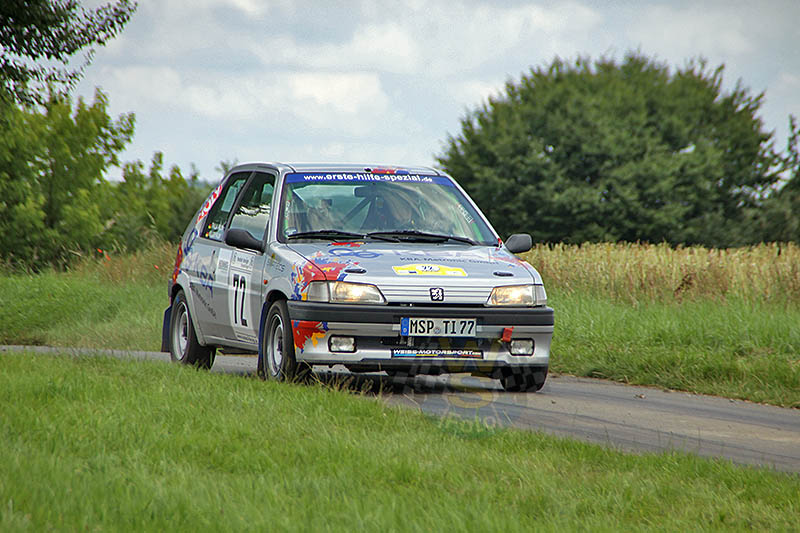 Am vergangenen Samstag war es nach 10 Monaten wieder soweit. Das Rallye Team Palm konnte nach langer Pause bei der Kumho Main Kinzig Rallye den kleinen Löwen artgerecht ausführen. Das frisch von Weiss-Motorsport.com revidierte Getriebe mit Sperre wurde bereits eine Woche zuvor beim Automobilslalom in Scheßlitz ausprobiert. Ein recht gewöhnungsbedürftiges "Zicken" des Franzosen musste nun also den Rallyeeinsatz bestehen. Da Holger das erste mal mit Sperre Rallye fuhr war der ein oder andere schweißtreibende Moment für die Piloten garantiert.