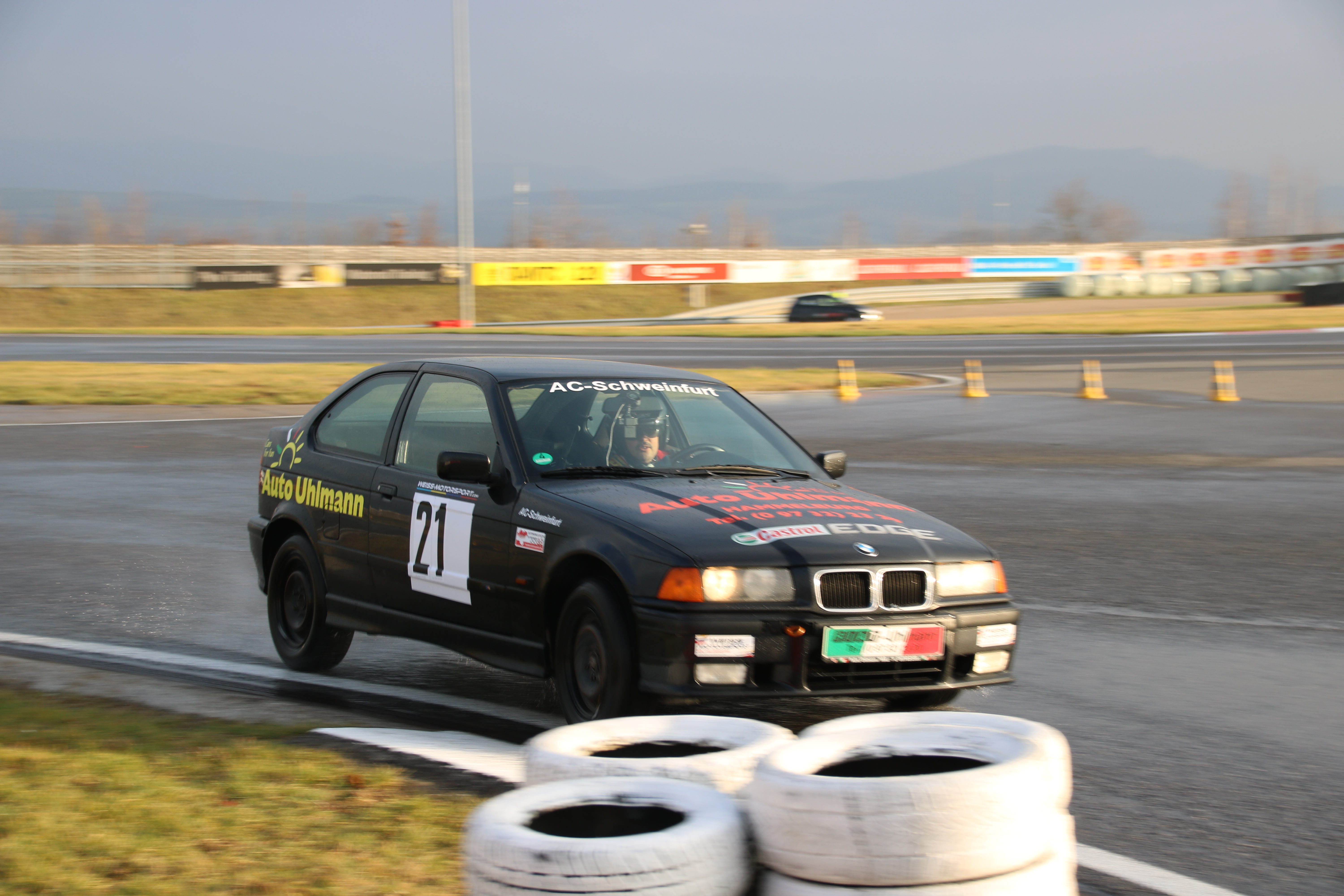 Nach der Fahrerbesprechung ging es am Samstag ab 8:00 Uhr mit dem Qualifying los. Schnell musste das Team des AC Schweinfurt feststellen, dass alle anderen Teams einen speziellen Regenreifen fahren und der Schnellste ca. 4 Sekunden pro Runde Zeitvorsprung hat.
